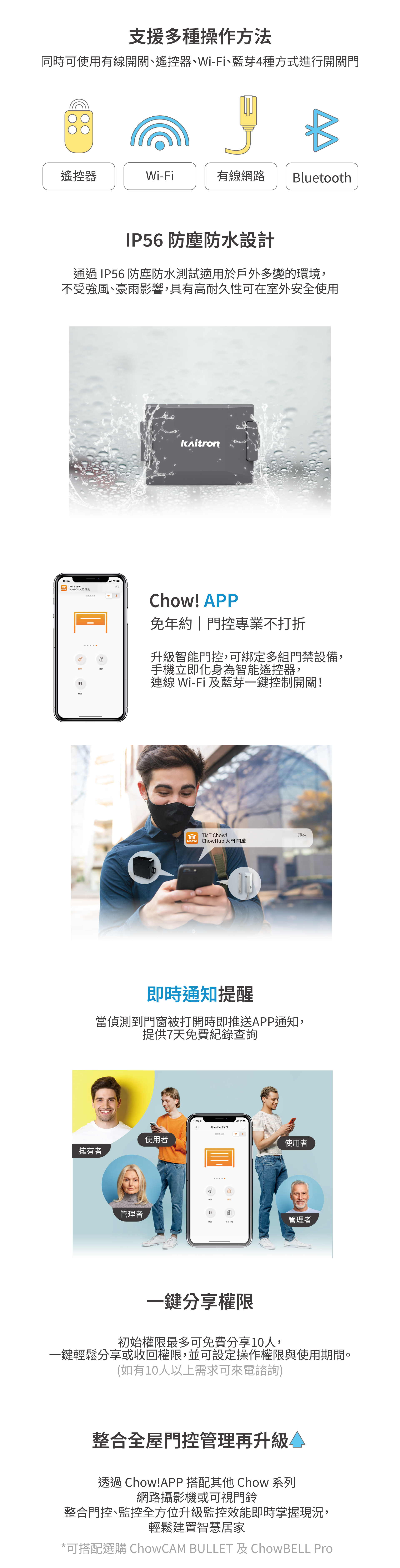 • 結合 Chow! APP 一手掌握居家/工作場域安全