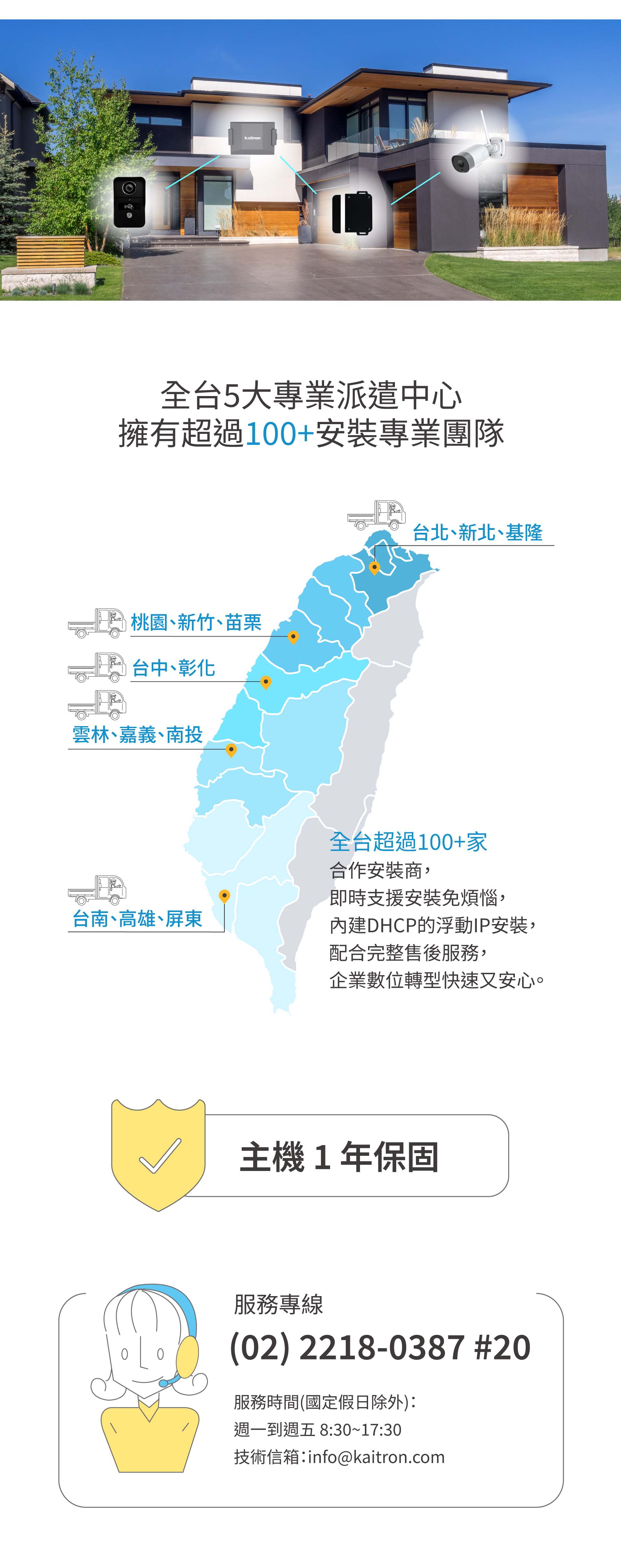 • 最多支援4組自動門及20個無線防水開關門偵測器