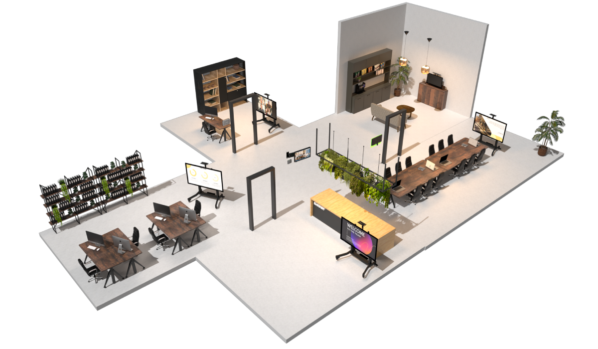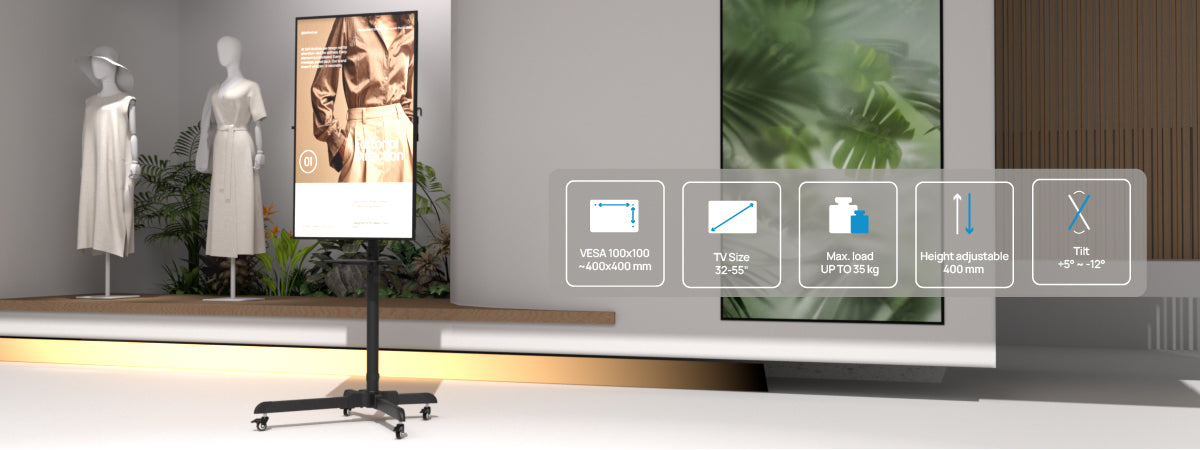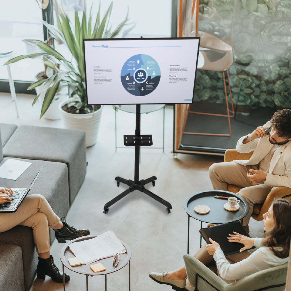 Foster an open-plan office where employees can speak freely. Mobile TV stands enhance viewing experience and turn your space into a flexible stage anytime, anywhere.