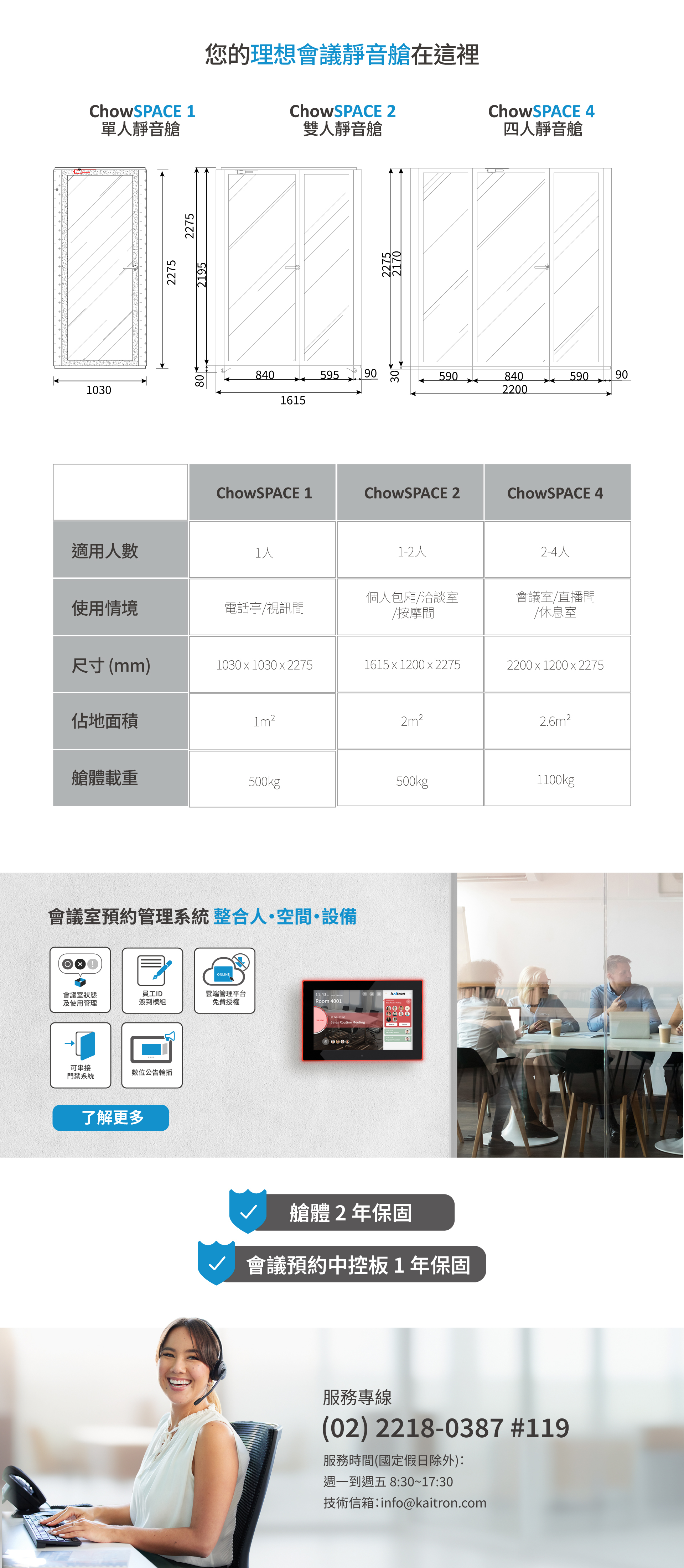 業界唯一! 隨艙配備ChowPAD會議室預約中控板